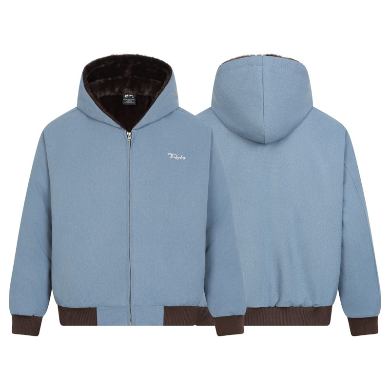 Retro Ice Blue Detroit Warm Mountain Hawk Cotton Coat, Unisex Street Style Loose Short Thick Outerwear